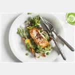 Ristet laks med ærter francaise, mini gulerødder samt crudité af radiser