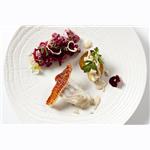 Kogt torsk med rødbede pasta senneps sauce og sprød bacon