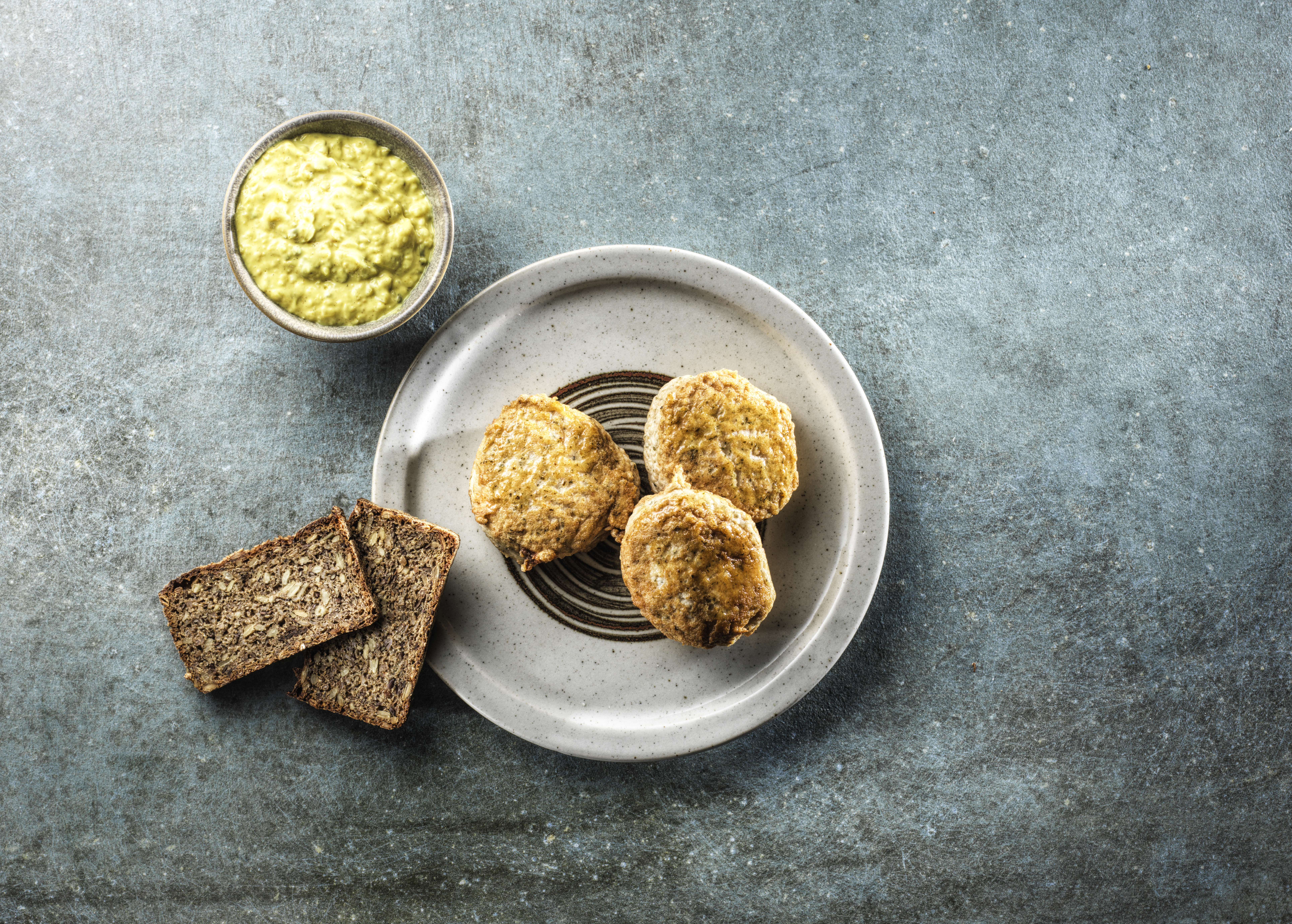 Fiskefrikadelle m/rugbrød, smør og remoulade